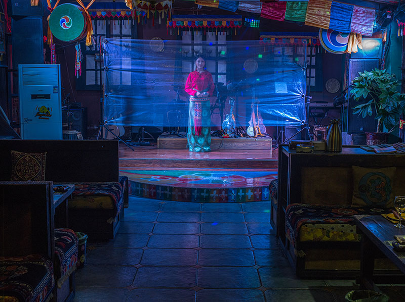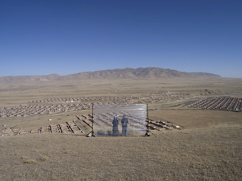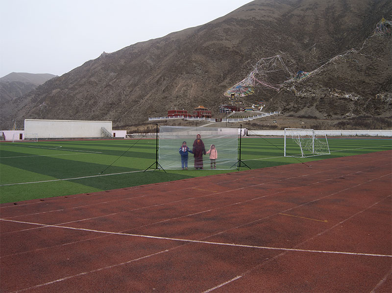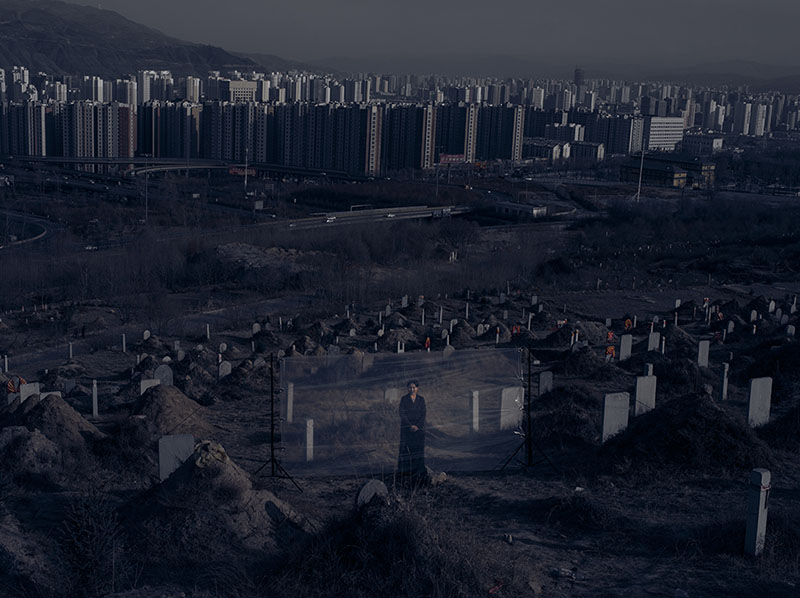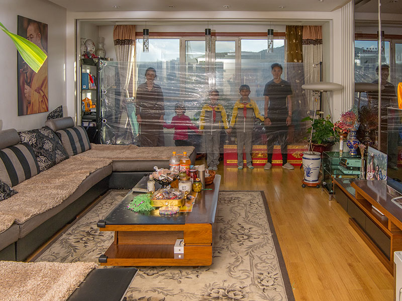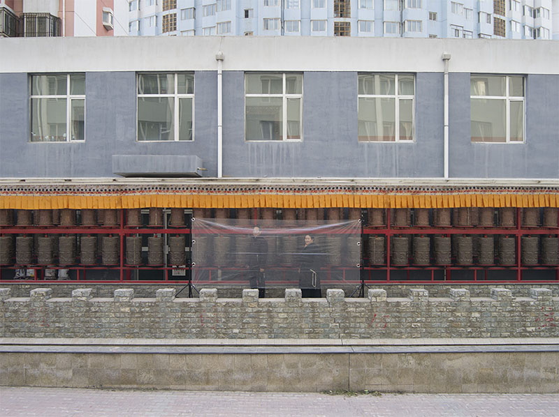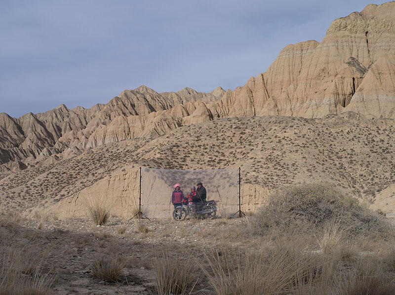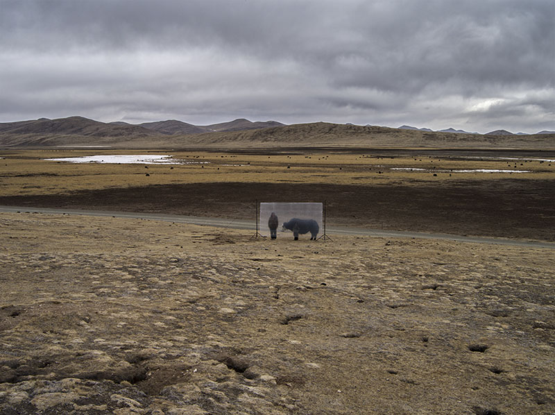 In 2009 I shot “Plastic Membrane”. From the winter of 2016 to the spring of 2017, I enlarged the plastic membrane that had been used as a prop in my photographic works, and embedded a device in the scene chosen by me. The photography objects and I were peering at each other with the membrane in the middle. I am naturally sensitive to a variety of realistic issues in the Tibetan areas. This time, taking photos mainly in the Tibetan areas on the Qinghai Plateau, I intend to express my thoughts and questions on this land through the half-transparent plastic membrane.